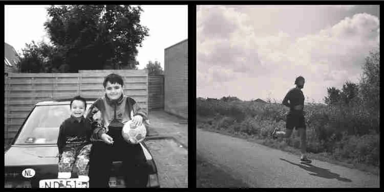 On the left: (chubby) Me and my little brother Daniel chilling on our dad’s busted Mitsubishi with a ripped up football. On the right: Looking like a lean mean running machine on one of my daily runs past summer.